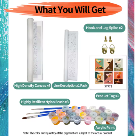 Met onze complete sets maak je stap voor stap je eigen kunstwerk. Geschikt voor jong en oud, ontspannend én creatief. Inclusief canvas, verf, penselen en handleiding – alles wat je nodig hebt om direct te beginnen. Perfect als cadeau of unieke decoratie voor in huis.