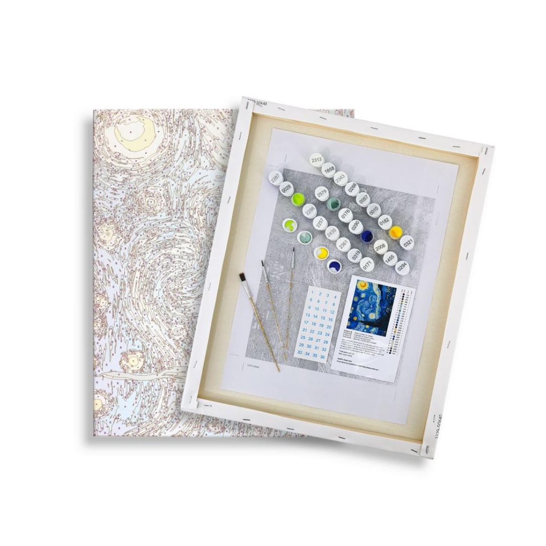 Met onze complete sets maak je stap voor stap je eigen kunstwerk. Geschikt voor jong en oud, ontspannend én creatief. Inclusief canvas, verf, penselen en handleiding – alles wat je nodig hebt om direct te beginnen. Perfect als cadeau of unieke decoratie voor in huis.